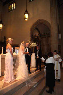 Having a reform rabbi perform a wedding ceremony at a restaurant is one thing; to do so in a church beside a priest is a whole other cup of tea. But that’s what Dalfen and Timmins envisioned — to be married in a church in a ceremony infused with elements of Catholicism and Judaism. The couple was able to find willing co-officiants in Bykova and Father Patrick Donnelley, who performed the ceremony on Nov. 9, 2013 at the Ascension of Our Lord Church on Kitchener Avenue and Sherbrooke Street in Westmount.