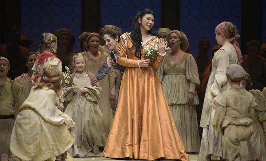 Opéra de Montréal’s production features the Orchestre symphonique de Montréal under the baton of Keri-Lynn Wilson. Tenor Kristian Benedikt as Otello gives a exquisitely wounded, war god-like performance, replete with Verdian nuance as richly burnished as his armour. Soprano Hiromi Omura sings Desdemona with great delicacy and imaginative understanding. And baritone Aris Argiris brings the deadly Iago to poisonous life, as cunning as the fox, as lethal as the scorpion. Finely cast in the other roles: tenor Antoine Bélanger (Cassio), mezzo-soprano Lauren Segal (Emilia), tenor Pasquale D’Alessio (Roderigo), baritone Josh Whelan (Montano), bass Valerian Ruminski (Lodovico), and baritone Geoffroy Salvas (a Herald).