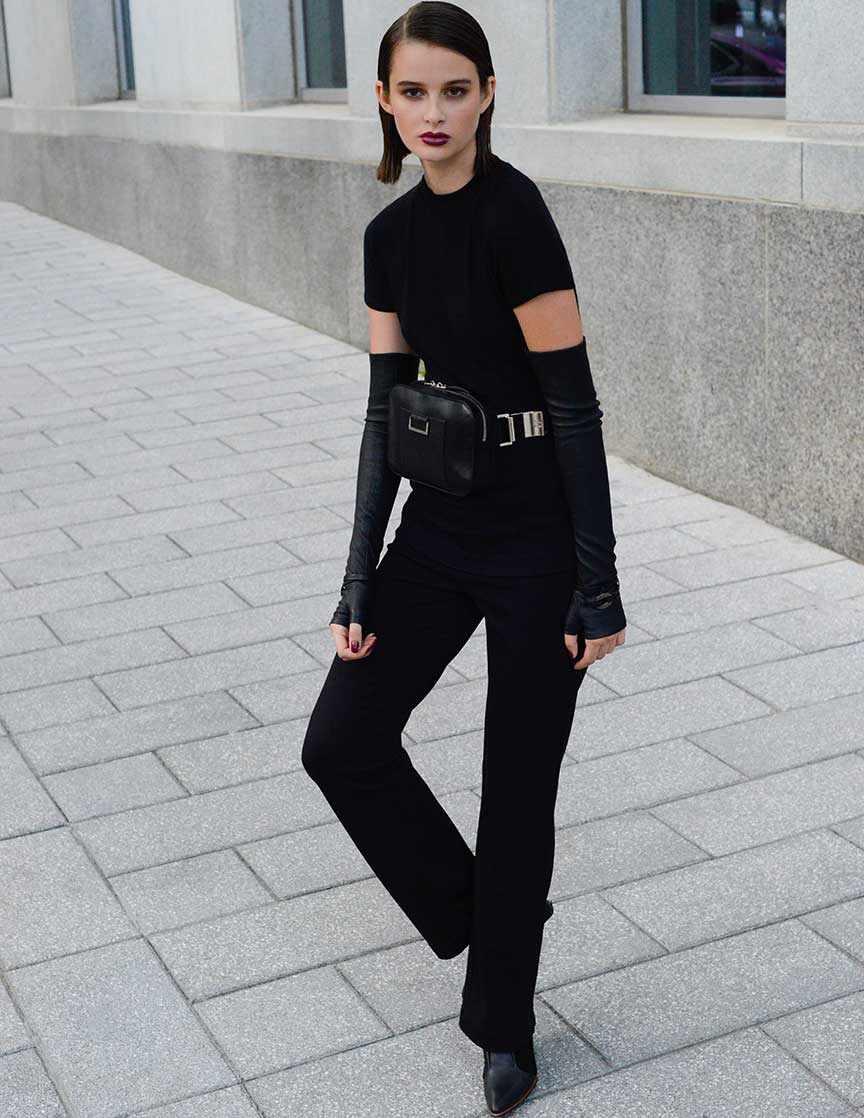 Minimaliste et malicieusement déstructurée dans ses coupes, la silhouette Saint Pierre se reconnaît depuis toujours à ses matières nobles et riches, mais aussi à son accent raffiné, zesté d’un glam urbain soutenu.