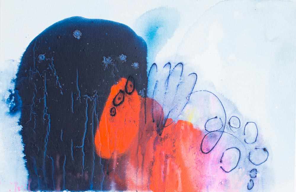 As a painter, Claire Desjardins has been deeply influenced by the American Abstract Expressionists, particularly in their use of colour and gesture to capture and probe meaning and emotion. She writes, “My paintings are personal. The outside world is referenced quite indirectly through the filter of my emotions. Through my work, I find myself expressing sentiments or reactions of which I am consciously unaware.” Desjardins works intuitively, provoked by the everyday world around her. “All of my work is an attempt to decipher the chatter in my head, to put forward a less awkward side of myself, to navigate through my everyday chaos towards calm.” Works such as Listen Carefully, Meanwhile Inside my Mind, The Elephant in the Room or the series of small canvases entitled The Secrets We Keep reflect her quotidian inspirations.