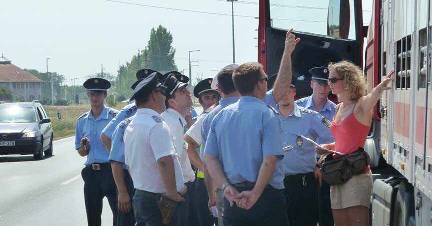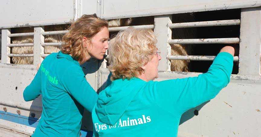 Her organization operates throughout Europe and Turkey with a small permanent staff, as well as freelancers and volunteers. “Our team of inspectors follow the animals from transportation to slaughter — we are essentially doing a job the Government should be doing.”