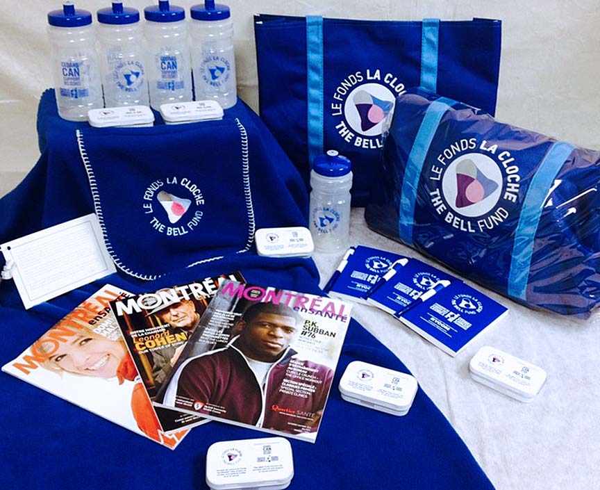 Le Fonds La Cloche , en collaboration avec la Fondation du cancer des Cèdres et CanSupport des Cèdres, fournira chaque année des Trousses réconfort à quelque 4 500 patients qui reçoivent un diagnostic de cancer. Les trousses contiennent une douillette couverture en molleton avec une pochette pour y tenir les pieds bien au chaud, une bouteille d’eau réutilisable pour étancher la soif et prendre les médicaments, un bloc-notes et un stylo pour inscrire les instructions données par les médecins et les infirmières, de délicieux bonbons à la menthe pour atténuer le goût métallique qui peut être un effet secondaire de la chimio et un magazine pour aider à passer le temps. Les trousses sont présentées dans un sac à bandoulière en toile, gracieuseté du Groupe international Travelway. Dans la brochure explicative qu’on retrouve dans le sac on peut lire « Les visites à l’hôpital sont difficiles, et les traitements sont souvent longs et épuisants. »