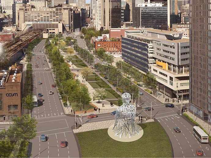 « Cette œuvre marquera l’entrée du centre-ville montréalais de façon magistrale et contribuera à l’image de la ville. Cette œuvre d’art monumentale viendra compléter avec brio l’aménagement de ce nouveau tronçon et créer une entrée au centre-ville à la fois prestigieuse, fonctionnelle et conviviale », a déclaré le maire de Montréal, M. Denis Coderre.