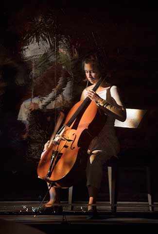 Jan Chan’s strumming of her cello in the background added an appropriate chord to the text, giving a subliminal music of the spheres meaning to “string theory”.