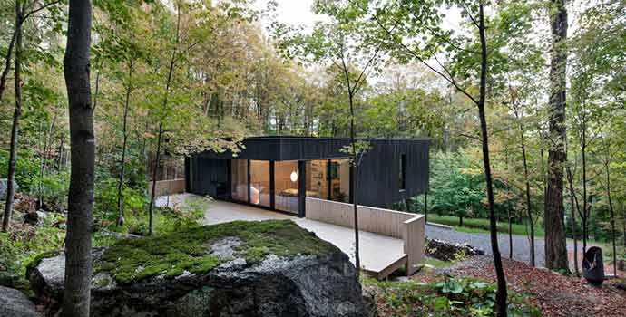 Une résidence ancrée à flanc de montagne au creux d’une érablière