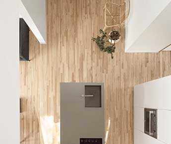 La réhabilitation de cet « A-frame » témoigne de la méthode de l’architecte qui, se rapprochant de l’essence du quotidien de ses clients, les entraîne à scruter leurs habitudes et leurs réels besoins familiaux afin de surpasser leurs propres limites.