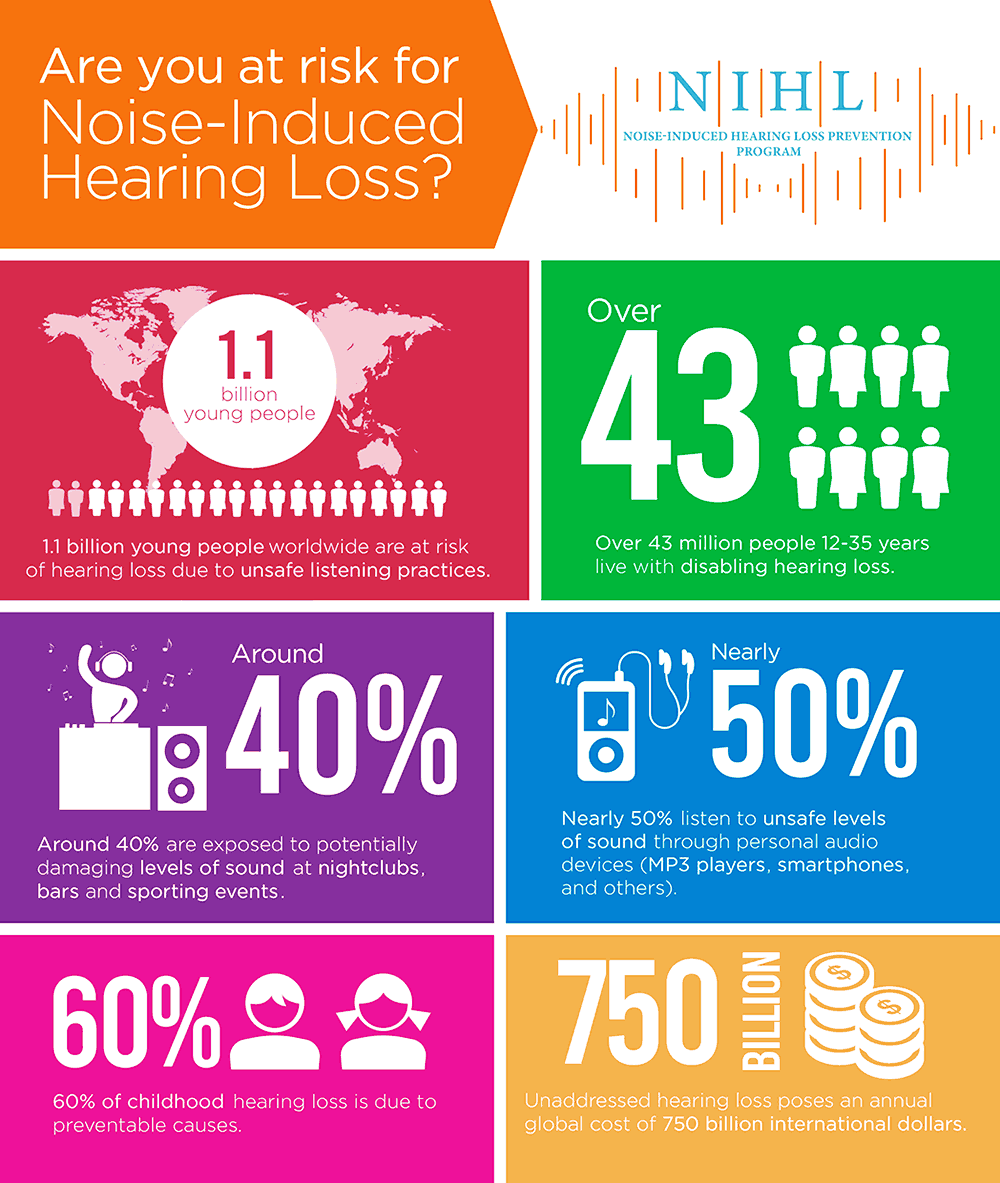 The World Health Organization reports that 1.1 billion youth worldwide are at risk of NIHL with that number expecting to increase in the coming years due to unsafe listening habits.