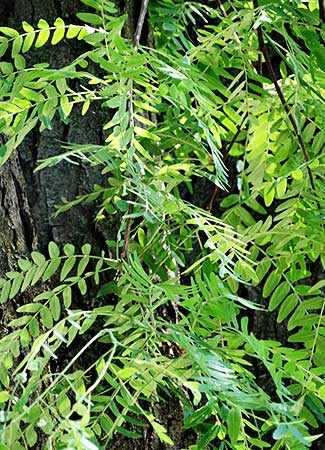 Their genus Gleditsia is named after Johann Gleditsch (1714-1778) the director of Berlin-Dahlem Botanical Garden and Botanical Museum. The species triacanthos translates to “three-horned” – from the Greek treis (three) and akantha (spine) and describes the tree’s thorns.