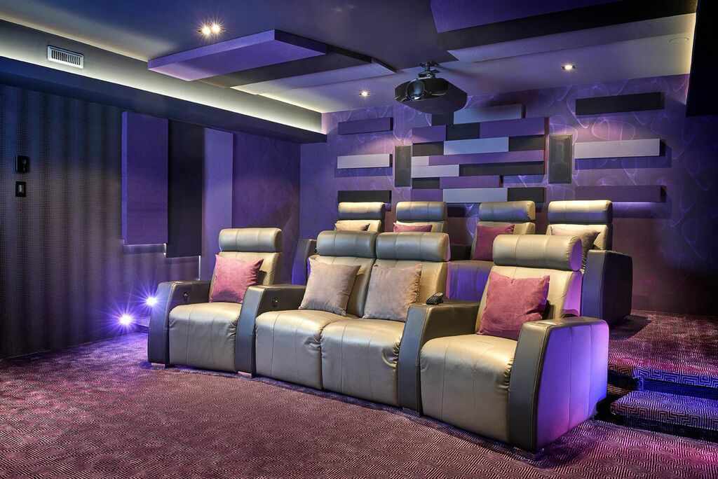 A dedicated home theatre is an enclosed room that is precisely designed and engineered to be used for enjoying any type of media, often reproducing a movie theatre experience and mood, with the help of video and audio equipment in a private home. It’s typically a large projected image or a large TV screen, and the audio is augmented with surround sound and low-frequency subwoofers. Seating is strategically positioned to allow unobstructed viewing and room lighting is carefully controlled.
