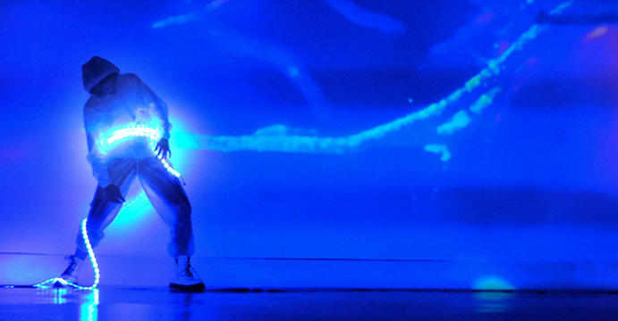 Louise Michel Jackson n’a certes pas chômé sur ce projet. Elle a pondu tous les aspects de cette création, tant la chorégraphie, le décor, les images projetés en fond de scène. « La pratique corporelle et visuelle de Jackson rencontre l’art sonore de Babin dans un univers performatif low-fi aux couleurs abyssales et aux surfaces incandescentes. Ce laboratoire des sens célèbre la bioluminescence et explore la nécessité pour l’être humain de générer sa propre lumière. » Couleurs abyssales avec des images sous-marines de corail, d’hippocampes au regard halluciné et des fibres optiques revêtues comme autant de sources lumineuses nous déstabilisant complètement.