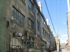 Behind the former Packard Motor Car Company of Canada Ltd. building.
