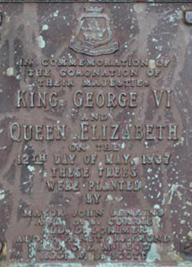 A largely neglected, and overlooked, commemorative plaque installed in 1937, as part of the park’s inauguration. It is located south of the existing five Oak trees.