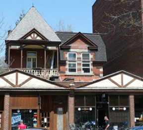 The façade of the Martin Swiss Bicycle shop fronts a building that was once an inn.