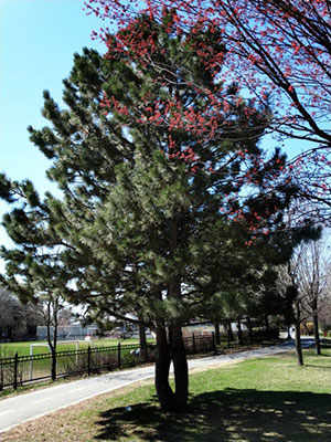 Aussi connu sous le nom de pin de Norvège, bien qu’il n’ait jamais poussé en Norvège, le pin rouge est fréquemment utilisé dans les plantations forestières de l’est du Canada. Le pin rouge, le pin noir et le pin sylvestre sont probablement issus d’un ancêtre commun qui avait une répartition boréale circumpolaire durant l’ère Tertiaire
